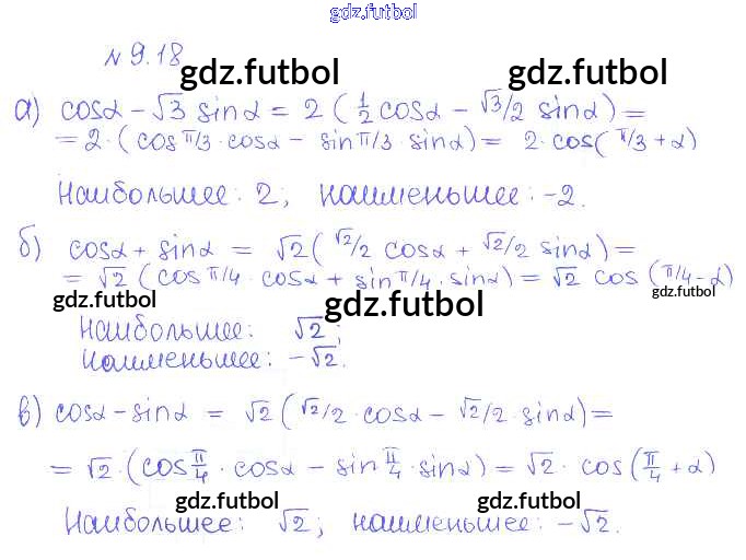 Готовые домашние задания по Алгебре за 10 класс Никольский Учебник МГУ - школе Базовый и углубленный уровень 2015 ФГОС - §9. Формулы сложения 18