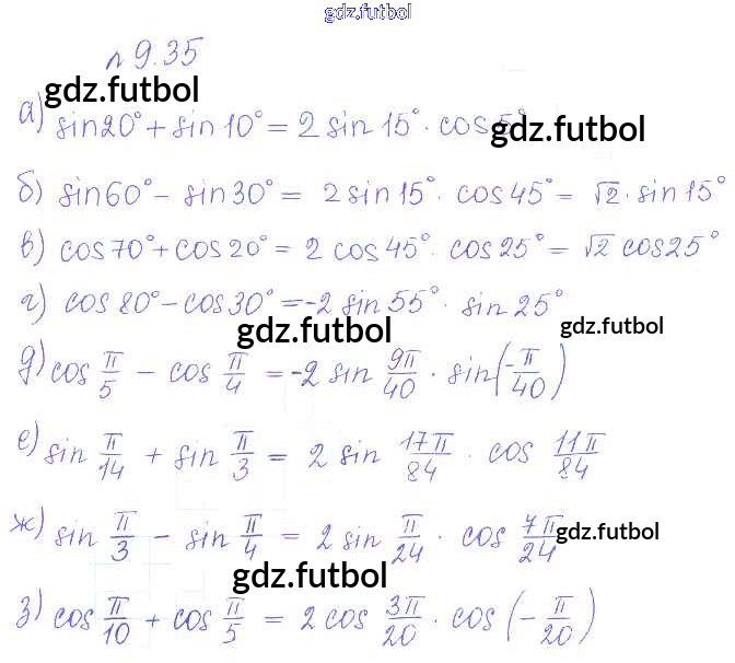 Готовые домашние задания по Алгебре за 10 класс Никольский Учебник МГУ - школе Базовый и углубленный уровень 2015 ФГОС - §9. Формулы сложения 35