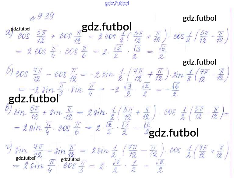 Готовые домашние задания по Алгебре за 10 класс Никольский Учебник МГУ - школе Базовый и углубленный уровень 2015 ФГОС - §9. Формулы сложения 39