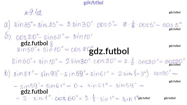 Готовые домашние задания по Алгебре за 10 класс Никольский Учебник МГУ - школе Базовый и углубленный уровень 2015 ФГОС - §9. Формулы сложения 42
