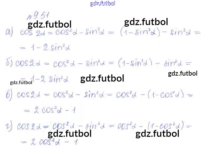 Готовые домашние задания по Алгебре за 10 класс Никольский Учебник МГУ - школе Базовый и углубленный уровень 2015 ФГОС - §9. Формулы сложения 51