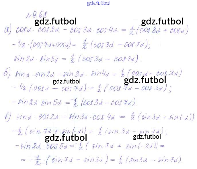 Готовые домашние задания по Алгебре за 10 класс Никольский Учебник МГУ - школе Базовый и углубленный уровень 2015 ФГОС - §9. Формулы сложения 68