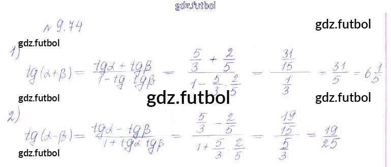 Готовые домашние задания по Алгебре за 10 класс Никольский Учебник МГУ - школе Базовый и углубленный уровень 2015 ФГОС - §9. Формулы сложения 74