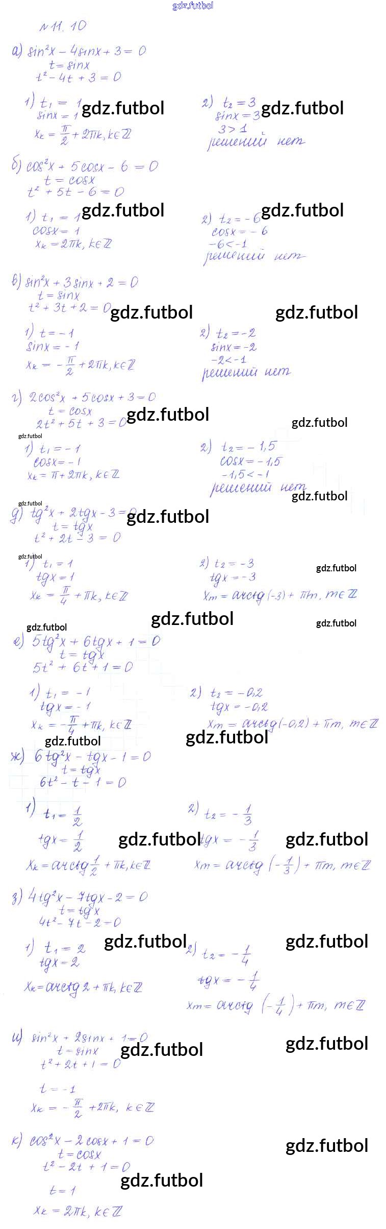 Готовые домашние задания по Алгебре за 10 класс Никольский Учебник МГУ - школе Базовый и углубленный уровень 2015 ФГОС - §11. Тригонометрические уравнения и неравенства 10
