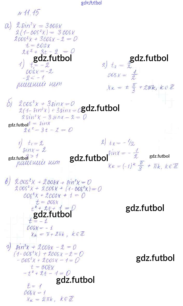 Готовые домашние задания по Алгебре за 10 класс Никольский Учебник МГУ - школе Базовый и углубленный уровень 2015 ФГОС - §11. Тригонометрические уравнения и неравенства 15