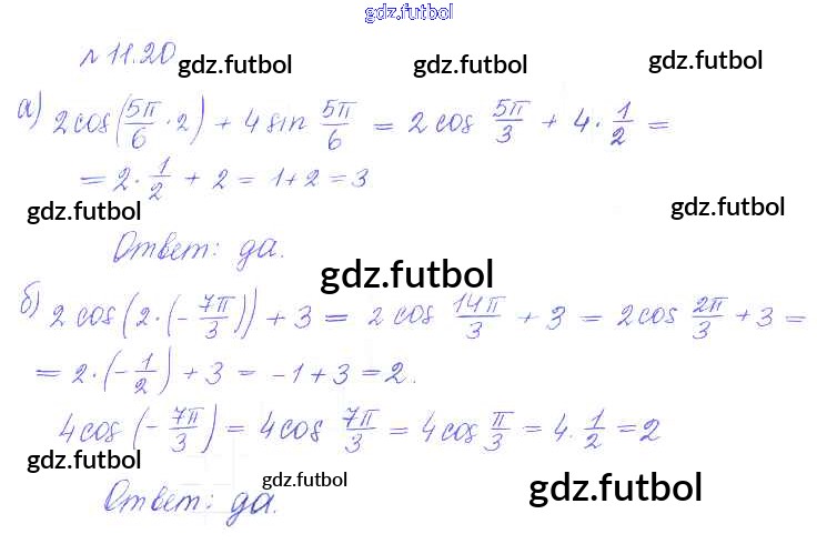 Готовые домашние задания по Алгебре за 10 класс Никольский Учебник МГУ - школе Базовый и углубленный уровень 2015 ФГОС - §11. Тригонометрические уравнения и неравенства 20