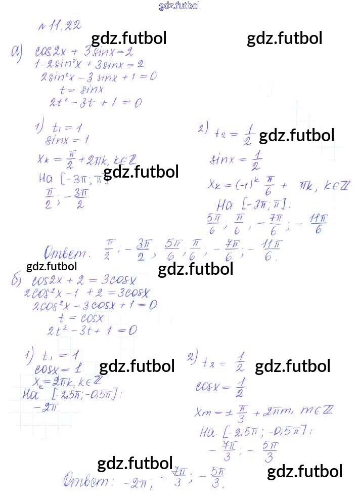 Готовые домашние задания по Алгебре за 10 класс Никольский Учебник МГУ - школе Базовый и углубленный уровень 2015 ФГОС - §11. Тригонометрические уравнения и неравенства 22