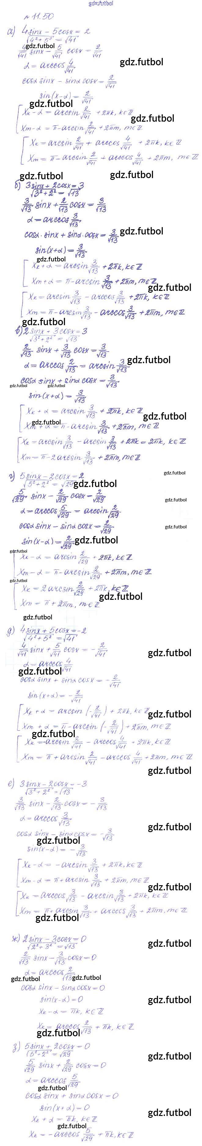 Готовые домашние задания по Алгебре за 10 класс Никольский Учебник МГУ - школе Базовый и углубленный уровень 2015 ФГОС - §11. Тригонометрические уравнения и неравенства 50