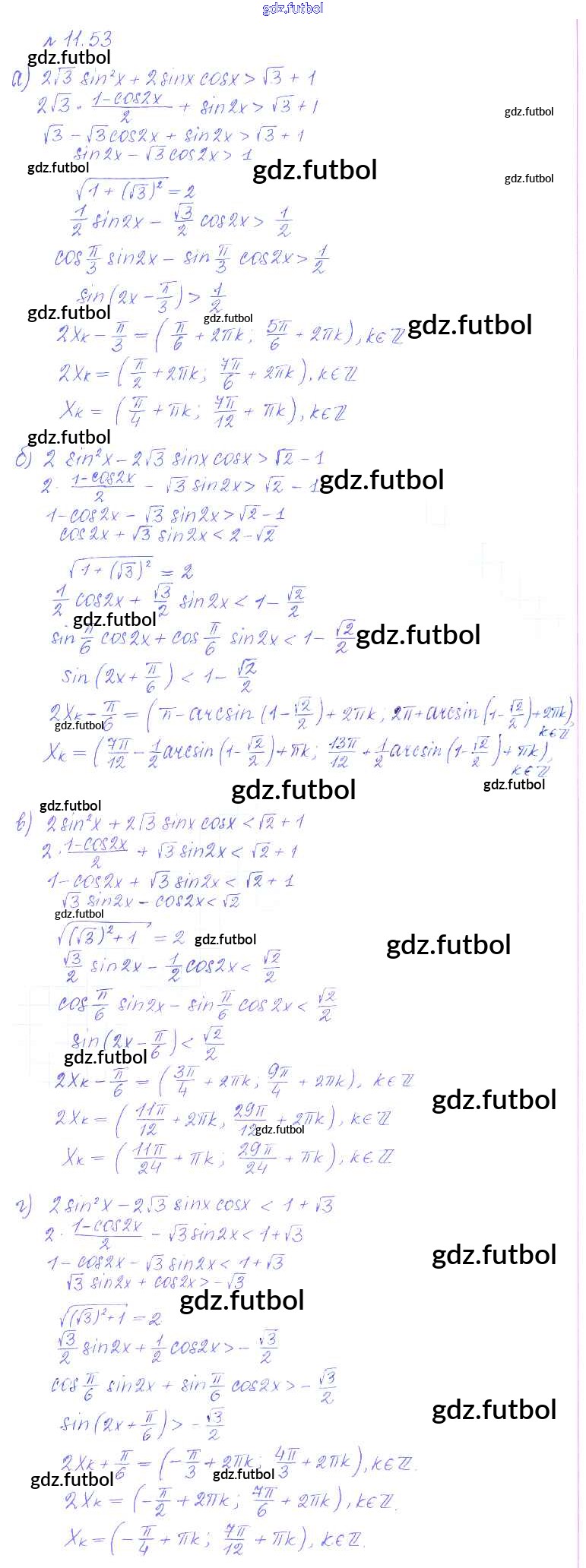 Готовые домашние задания по Алгебре за 10 класс Никольский Учебник МГУ - школе Базовый и углубленный уровень 2015 ФГОС - §11. Тригонометрические уравнения и неравенства 53
