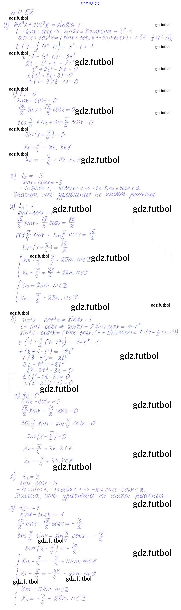 Готовые домашние задания по Алгебре за 10 класс Никольский Учебник МГУ - школе Базовый и углубленный уровень 2015 ФГОС - §11. Тригонометрические уравнения и неравенства 58