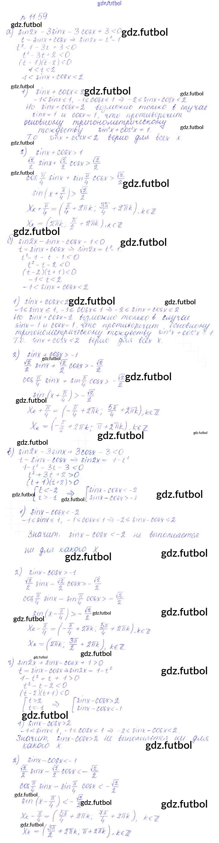 Готовые домашние задания по Алгебре за 10 класс Никольский Учебник МГУ - школе Базовый и углубленный уровень 2015 ФГОС - §11. Тригонометрические уравнения и неравенства 59