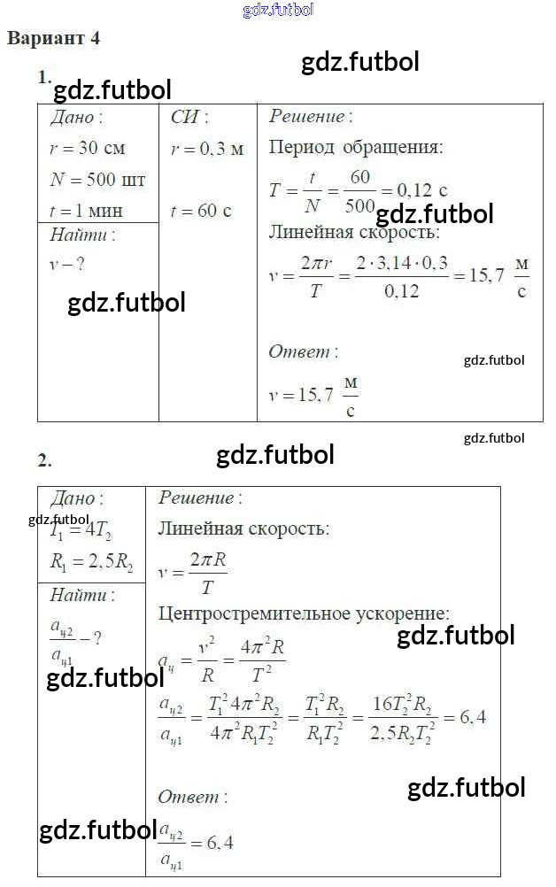 Готовые домашние задания по Физике за 10 класс Ерюткин Самостоятельные и контрольные работы Базовый и углубленный уровень 2018 ФГОС - СР №10 4