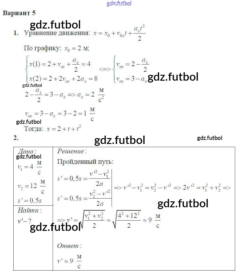 Готовые домашние задания по Физике за 10 класс Ерюткин Самостоятельные и контрольные работы  Базовый и углубленный уровень 2018 ФГОС - СР №5 5