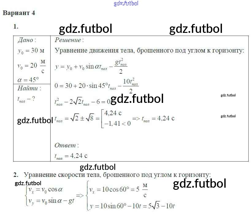 Готовые домашние задания по Физике за 10 класс Ерюткин Самостоятельные и контрольные работы Базовый и углубленный уровень 2018 ФГОС - СР №8 4