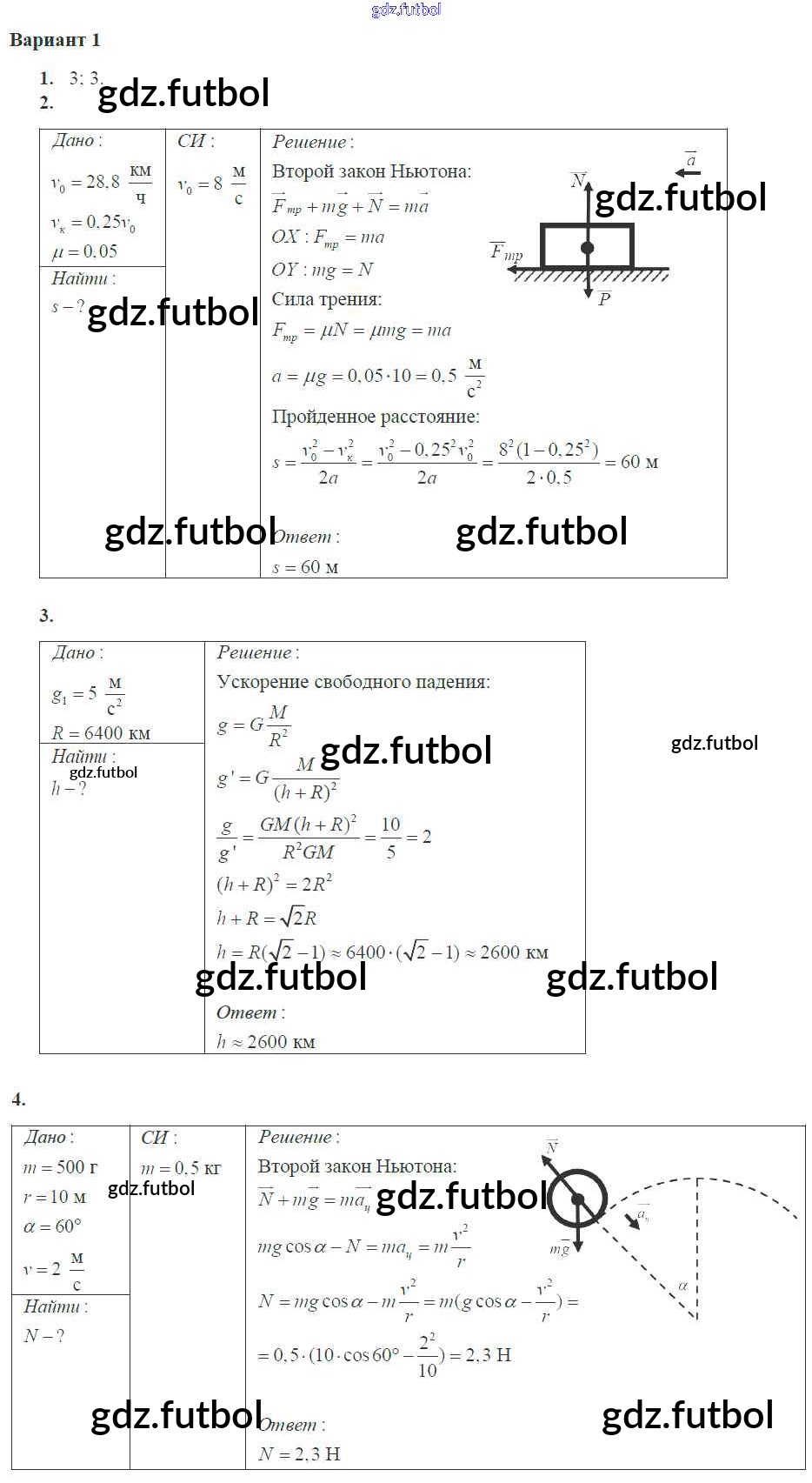 Готовые домашние задания по Физике за 10 класс Ерюткин Самостоятельные и контрольные работы  Базовый и углубленный уровень 2018 ФГОС - КР 1