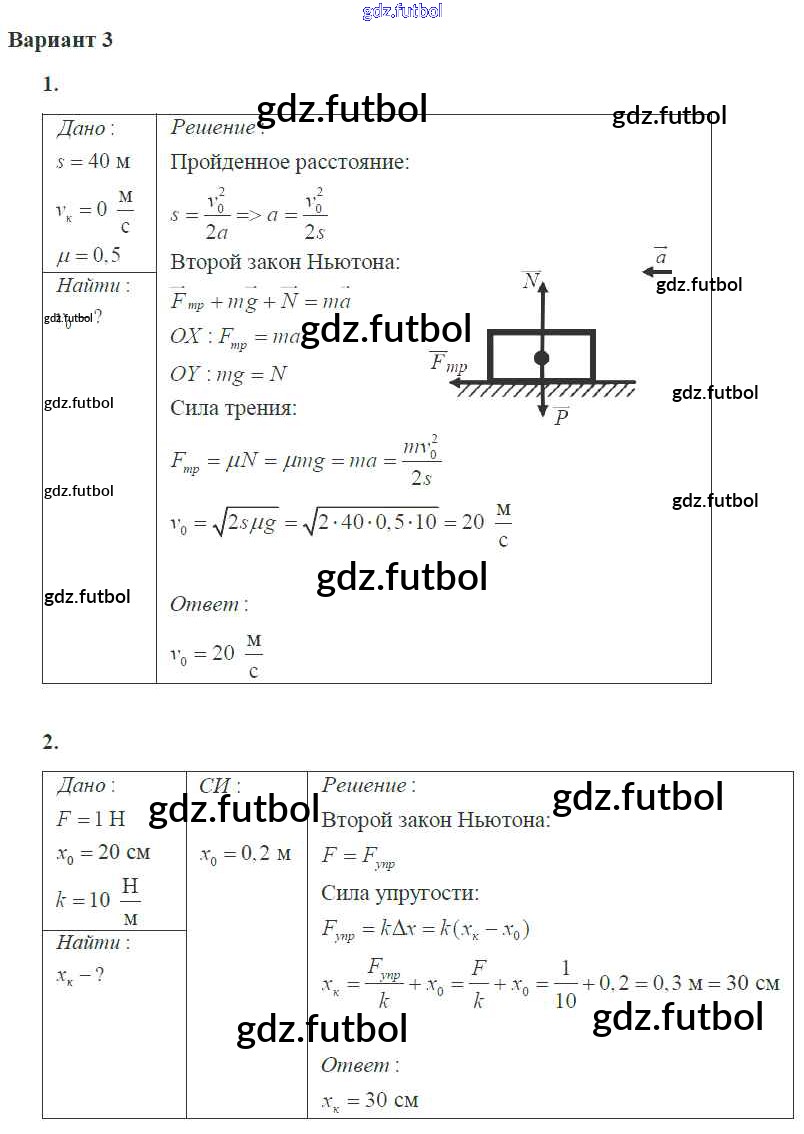 Готовые домашние задания по Физике за 10 класс Ерюткин Самостоятельные и контрольные работы Базовый и углубленный уровень 2018 ФГОС - СР №10 3