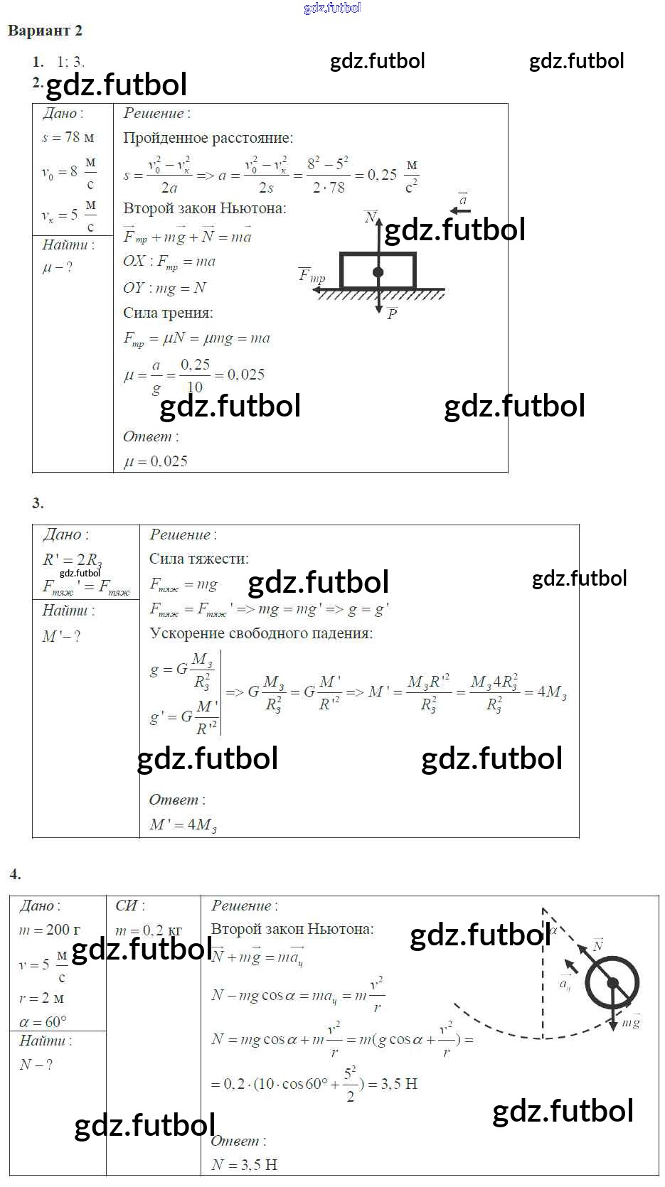 Готовые домашние задания по Физике за 10 класс Ерюткин Самостоятельные и контрольные работы  Базовый и углубленный уровень 2018 ФГОС - КР 2