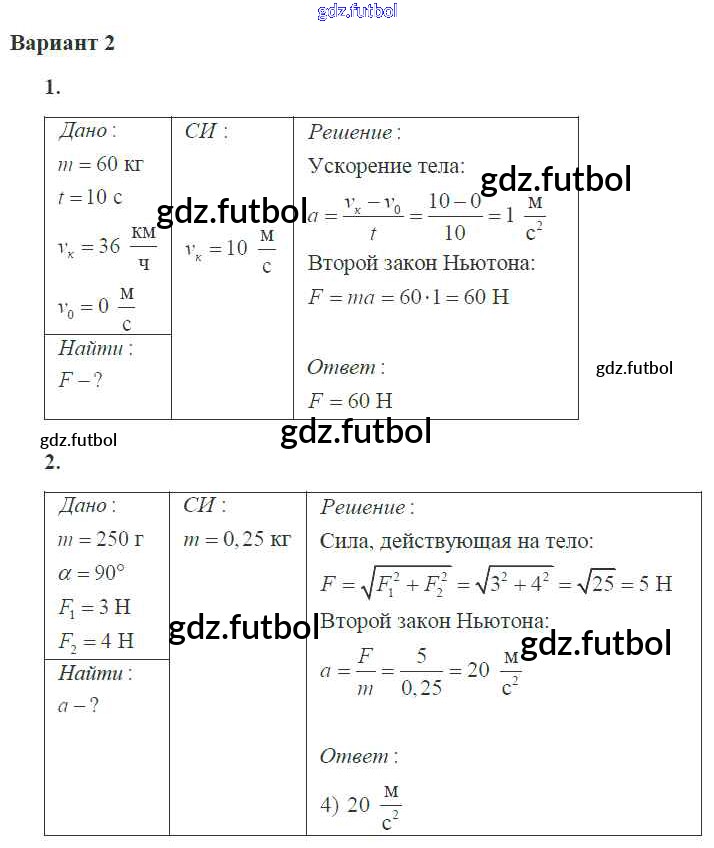 Готовые домашние задания по Физике за 10 класс Ерюткин Самостоятельные и контрольные работы Базовый и углубленный уровень 2018 ФГОС - СР №2 2