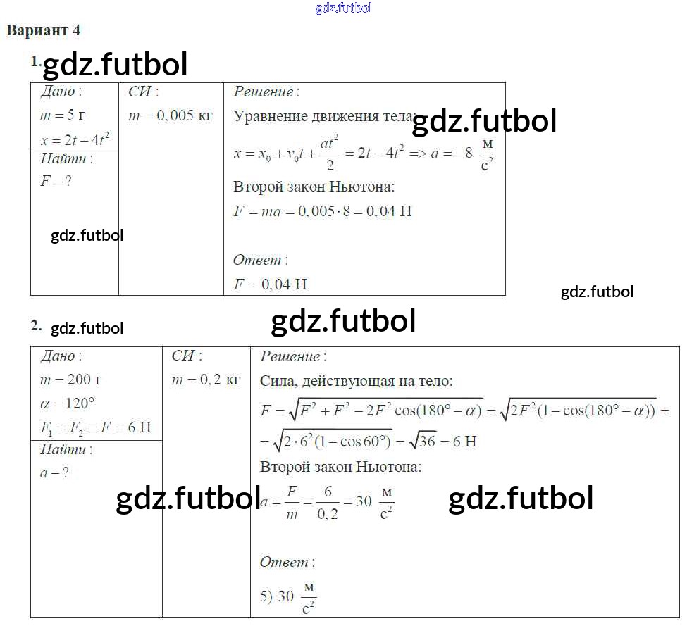 Готовые домашние задания по Физике за 10 класс Ерюткин Самостоятельные и контрольные работы  Базовый и углубленный уровень 2018 ФГОС - СР №2 4