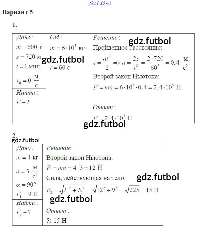 Готовые домашние задания по Физике за 10 класс Ерюткин Самостоятельные и контрольные работы  Базовый и углубленный уровень 2018 ФГОС - СР №2 5