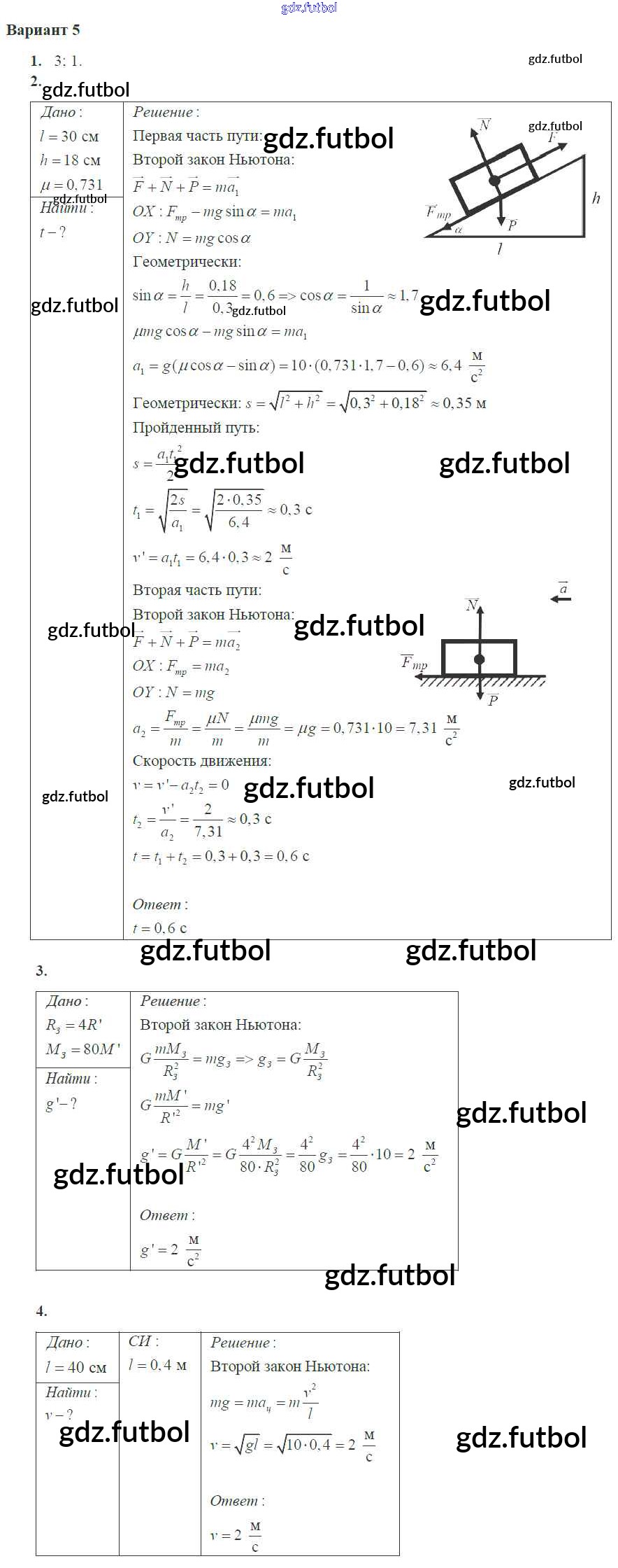 Готовые домашние задания по Физике за 10 класс Ерюткин Самостоятельные и контрольные работы Базовый и углубленный уровень 2018 ФГОС - КР 5