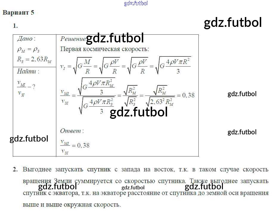Готовые домашние задания по Физике за 10 класс Ерюткин Самостоятельные и контрольные работы Базовый и углубленный уровень 2018 ФГОС - СР №5 5