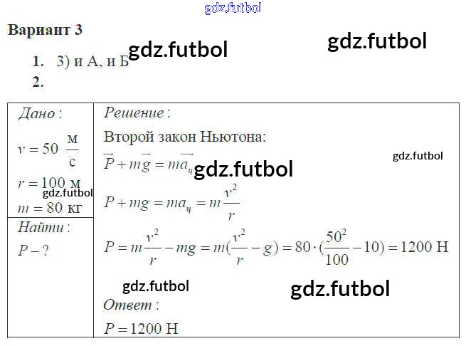 Готовые домашние задания по Физике за 10 класс Ерюткин Самостоятельные и контрольные работы Базовый и углубленный уровень 2018 ФГОС - СР №7 3