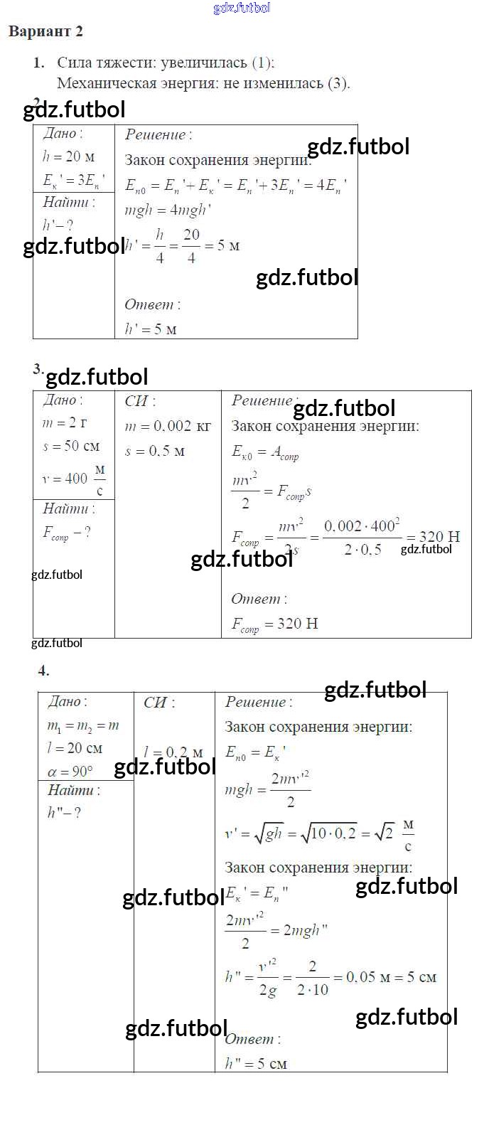 Готовые домашние задания по Физике за 10 класс Ерюткин Самостоятельные и контрольные работы Базовый и углубленный уровень 2018 ФГОС - КР 2