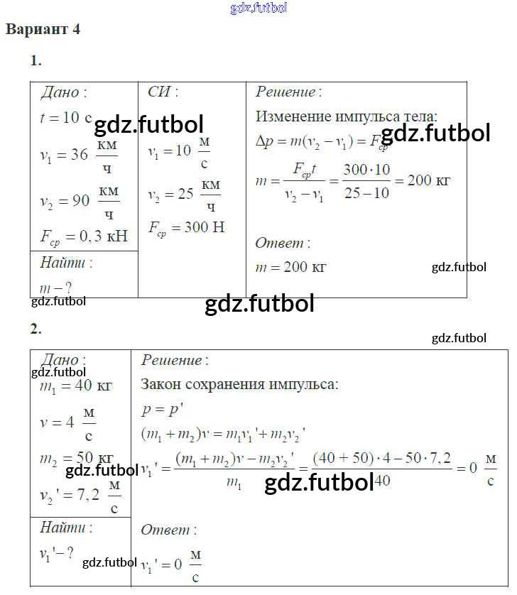Готовые домашние задания по Физике за 10 класс Ерюткин Самостоятельные и контрольные работы Базовый и углубленный уровень 2018 ФГОС - СР №2 4