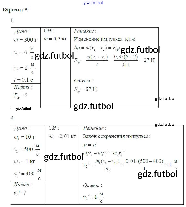Готовые домашние задания по Физике за 10 класс Ерюткин Самостоятельные и контрольные работы  Базовый и углубленный уровень 2018 ФГОС - СР №2 5