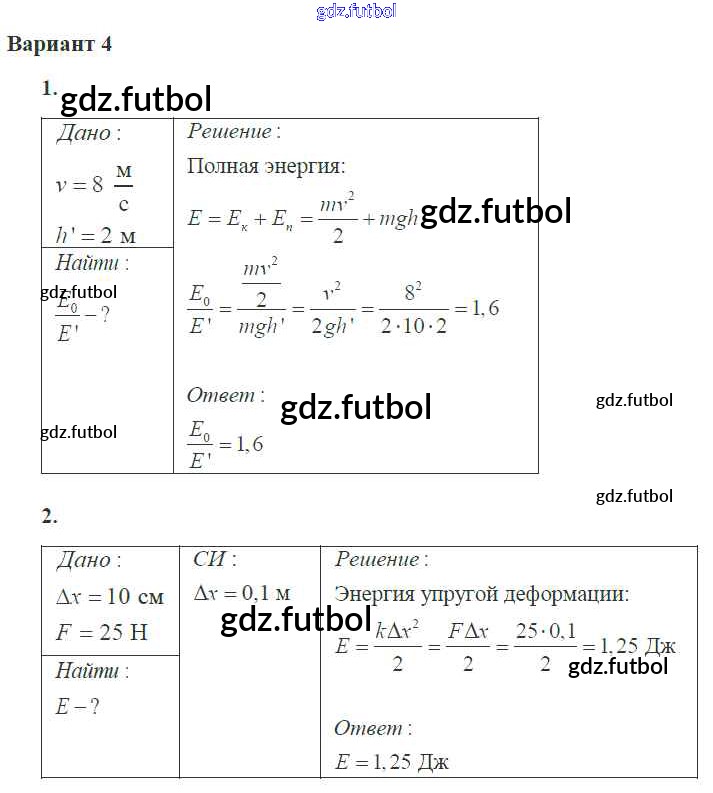 Готовые решения задач (ГДЗ) по Физике десятый класс Ерюткин, Ерюткина Самостоятельные и контрольные работы Базовый и углубленный уровень 2018 ФГОС - СР №3 Законы сохранения в механике 4 доступны для различных учебных материалов. У нас вы сможете найти авторские решения для всех пособий, предназначенных для школьников. Не секрет, что в настоящее время многие школьники прибегают к использованию готовых решебников, ведь они содержат подробные ответы для каждого упражнения, представленного в учебнике.