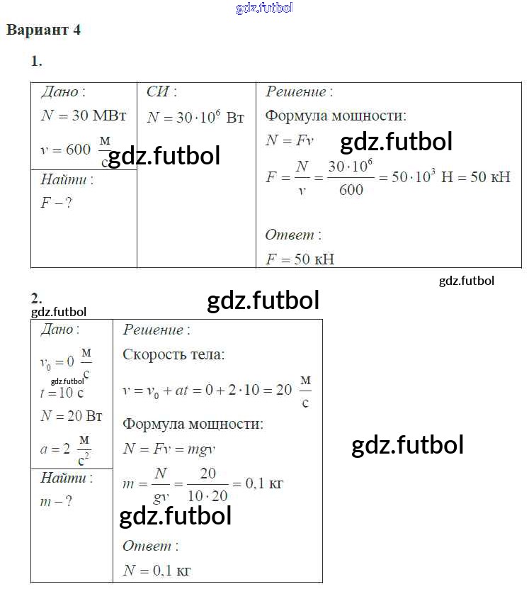 Готовые домашние задания по Физике за 10 класс Ерюткин Самостоятельные и контрольные работы Базовый и углубленный уровень 2018 ФГОС - СР №5 4