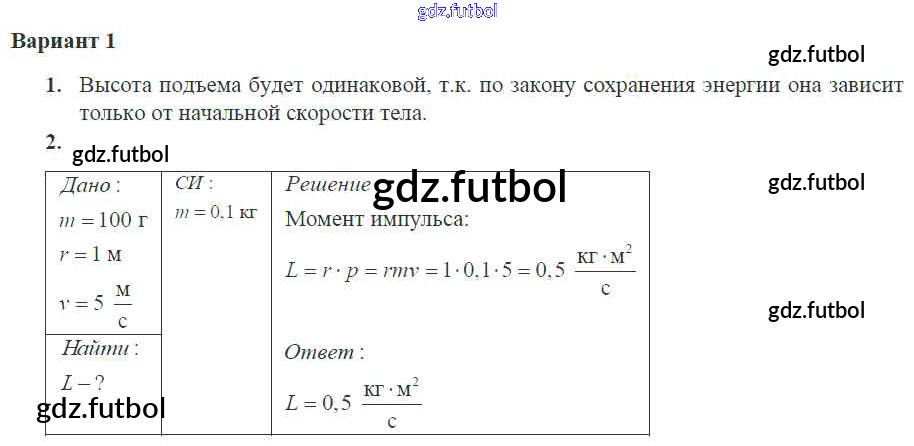 Готовые домашние задания по Физике за 10 класс Ерюткин Самостоятельные и контрольные работы Базовый и углубленный уровень 2018 ФГОС - СР №8 1