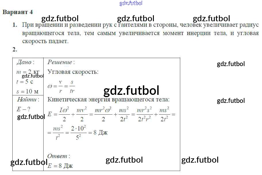 Готовые домашние задания по Физике за 10 класс Ерюткин Самостоятельные и контрольные работы Базовый и углубленный уровень 2018 ФГОС - СР №8 4