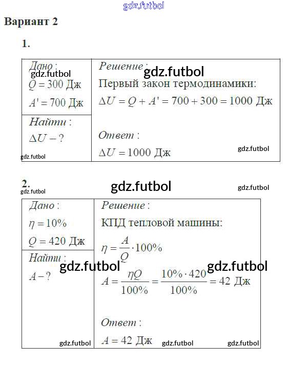 Готовые решения задач (ГДЗ) по Физике десятый класс Ерюткин, Ерюткина Самостоятельные и контрольные работы Базовый и углубленный уровень 2018 ФГОС - СР №3 Основы термодинамики 2 доступны для различных учебных материалов. У нас вы сможете найти авторские решения для всех пособий, предназначенных для школьников. Не секрет, что в настоящее время многие школьники прибегают к использованию готовых решебников, ведь они содержат подробные ответы для каждого упражнения, представленного в учебнике.
