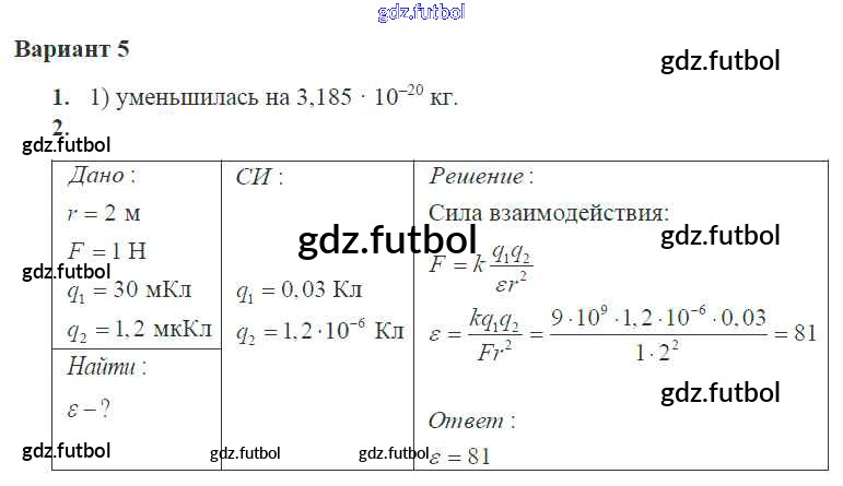 Готовые домашние задания по Физике за 10 класс Ерюткин Самостоятельные и контрольные работы  Базовый и углубленный уровень 2018 ФГОС - СР №1 5