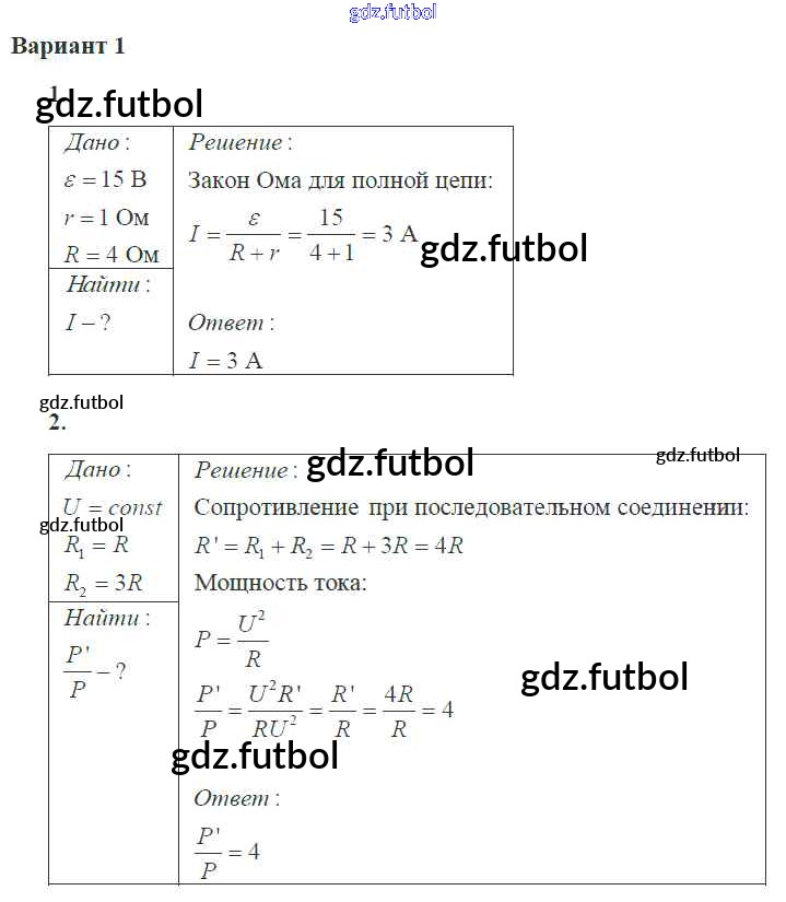 Готовые домашние задания по Физике за 10 класс Ерюткин Самостоятельные и контрольные работы Базовый и углубленный уровень 2018 ФГОС - СР №3 1