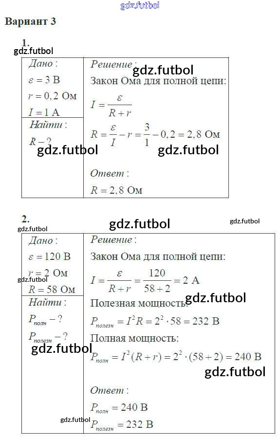 Готовые домашние задания по Физике за 10 класс Ерюткин Самостоятельные и контрольные работы Базовый и углубленный уровень 2018 ФГОС - СР №3 3