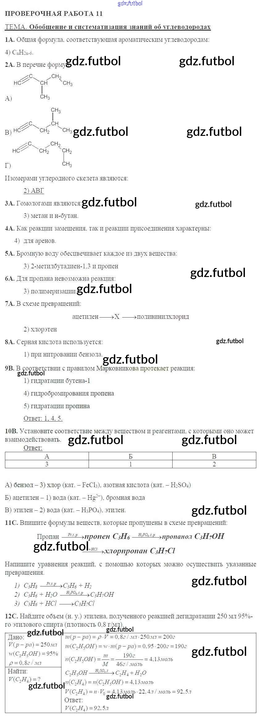 Готовые домашние задания по Химии за 10 класс Габриелян Тетрадь для оценки качества знаний 2014 ФГОС - Проверочные работы 11