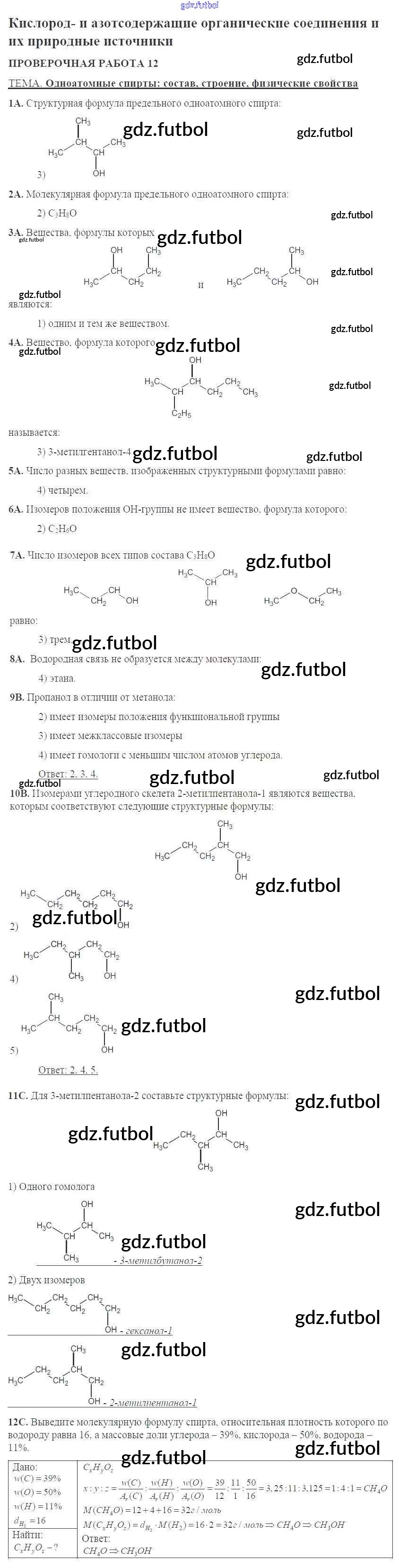 Готовые домашние задания по Химии за 10 класс Габриелян Тетрадь для оценки качества знаний 2014 ФГОС - Проверочные работы 12