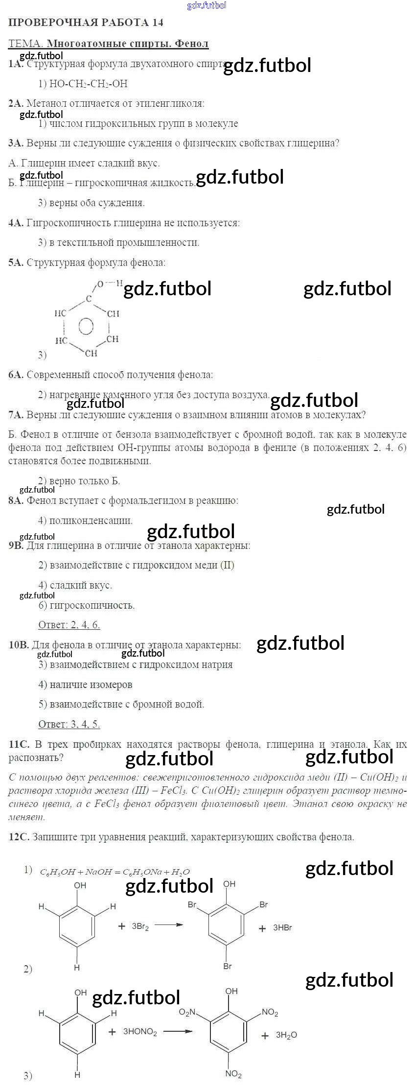 Готовые домашние задания по Химии за 10 класс Габриелян Тетрадь для оценки качества знаний 2014 ФГОС - Проверочные работы 14