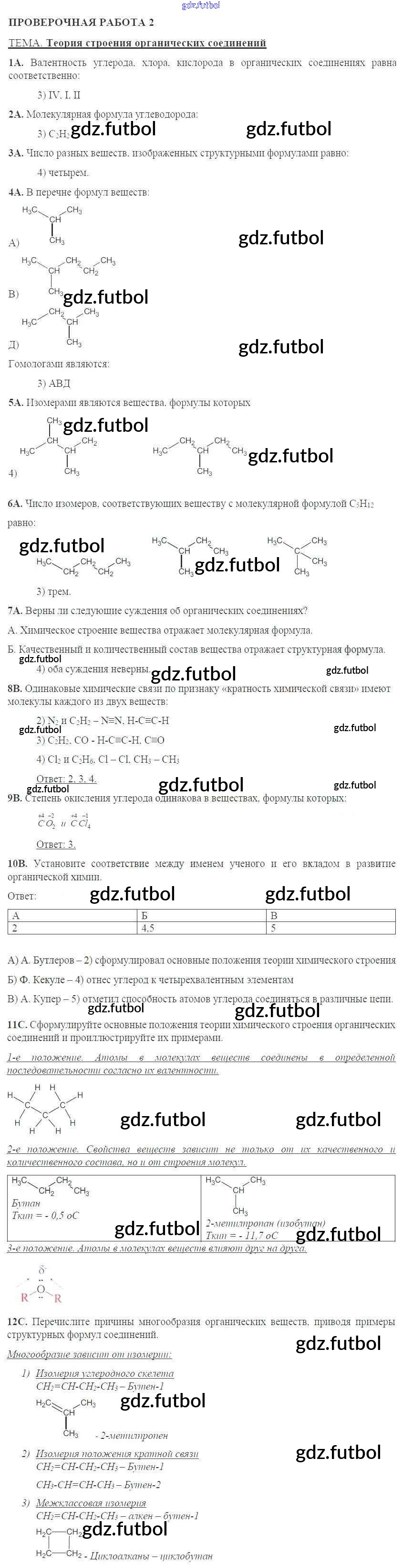 Готовые домашние задания по Химии за 10 класс Габриелян Тетрадь для оценки качества знаний 2014 ФГОС - Проверочные работы 2