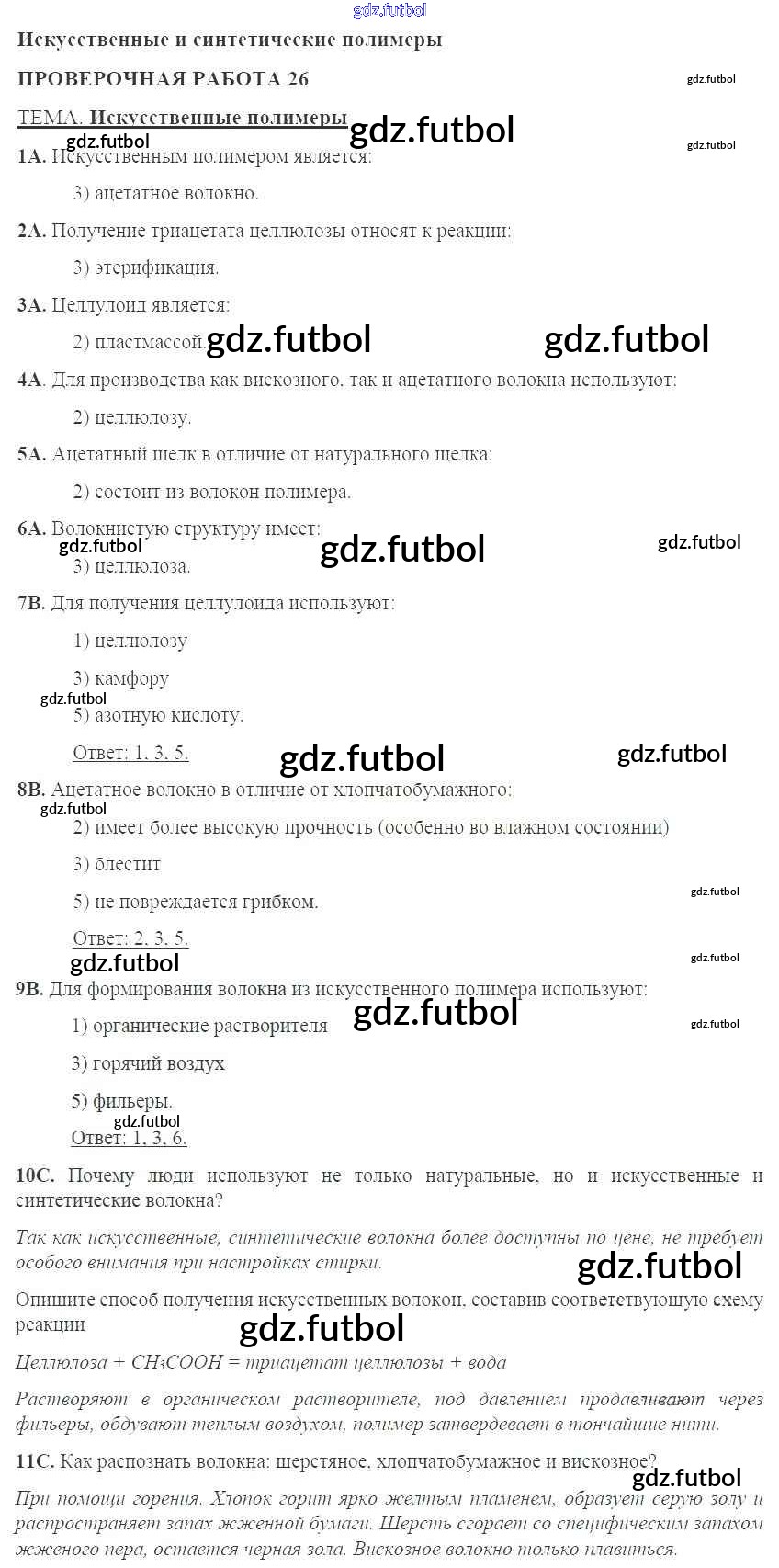 Готовые домашние задания по Химии за 10 класс Габриелян Тетрадь для оценки качества знаний 2014 ФГОС - Проверочные работы 26