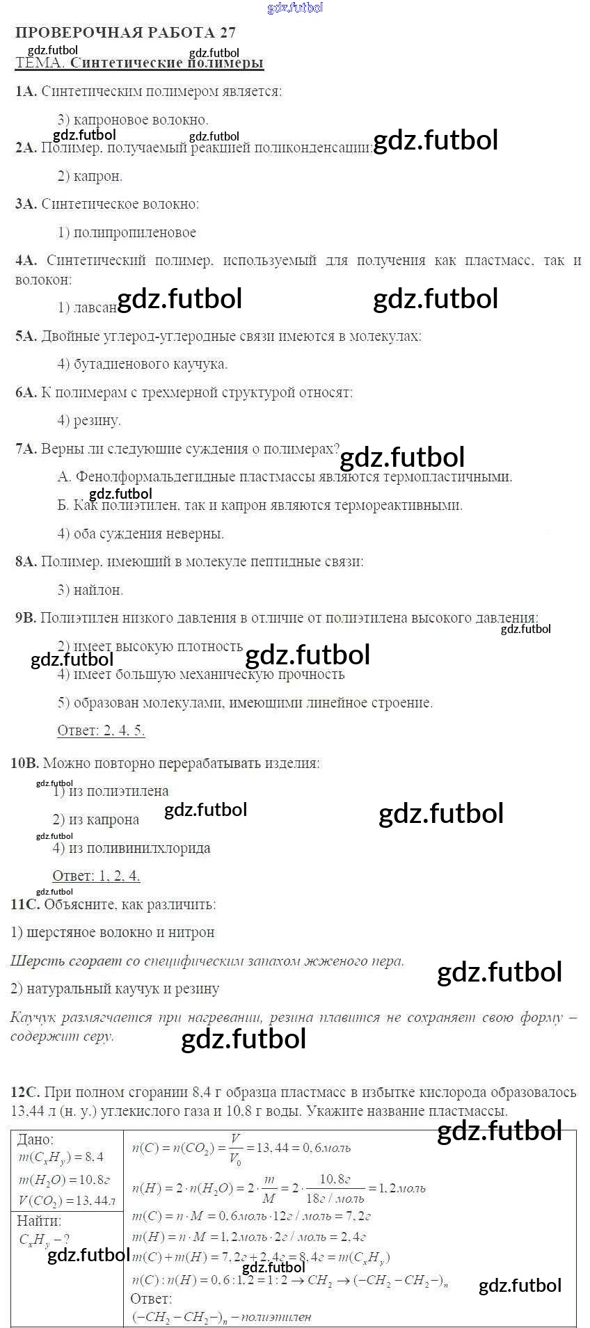 Готовые домашние задания по Химии за 10 класс Габриелян Тетрадь для оценки качества знаний 2014 ФГОС - Проверочные работы 27