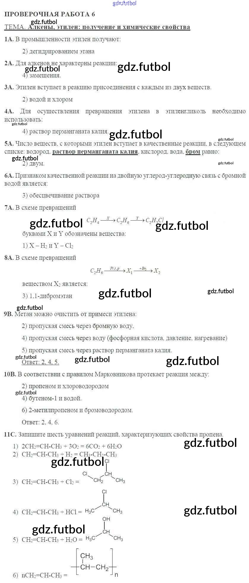 Готовые домашние задания по Химии за 10 класс Габриелян Тетрадь для оценки качества знаний 2014 ФГОС - Проверочные работы 6