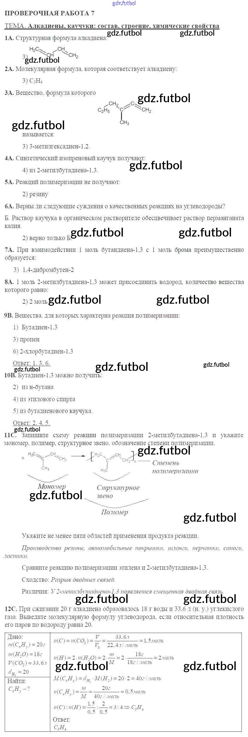 Готовые домашние задания по Химии за 10 класс Габриелян Тетрадь для оценки качества знаний 2014 ФГОС - Проверочные работы 7