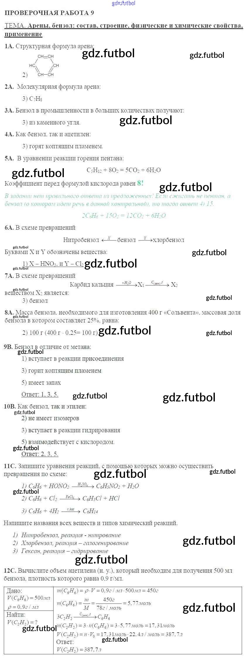 Готовые домашние задания по Химии за 10 класс Габриелян Тетрадь для оценки качества знаний 2014 ФГОС - Проверочные работы 9