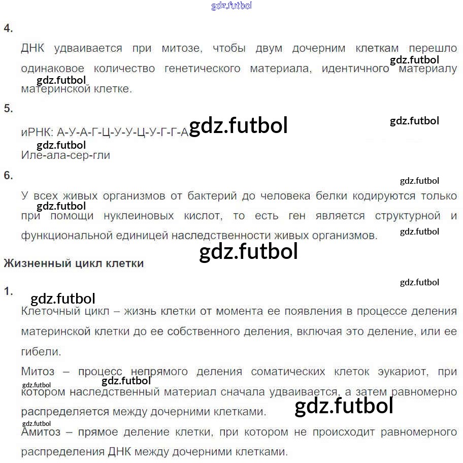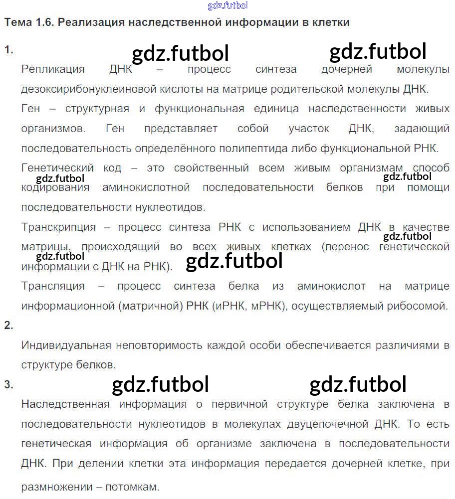 Готовые домашние задания по Биологии за 11 класс Пасечник Рабочая тетрадь УМК Базовый уровень 2017 ФГОС - Глава 1. Клетка Тема 6