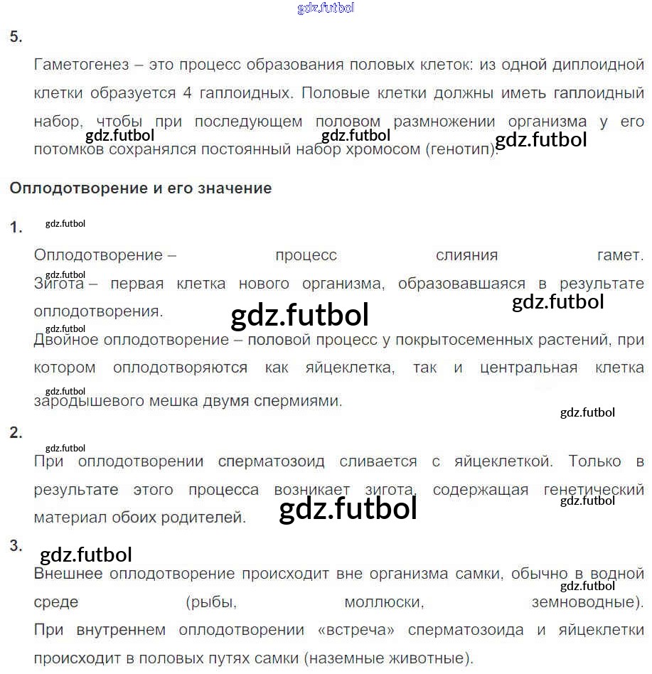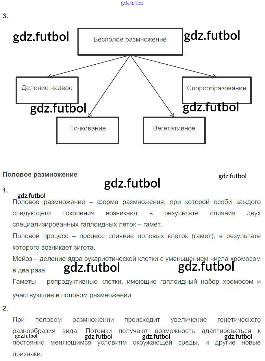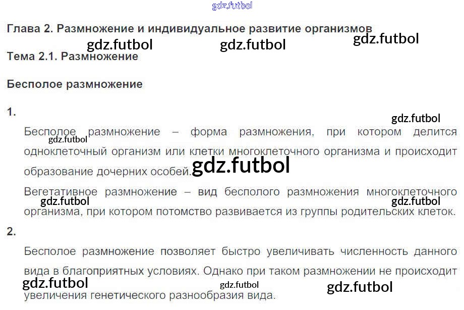 Готовые домашние задания по Биологии за 11 класс Пасечник Рабочая тетрадь УМК Базовый уровень 2017 ФГОС - Глава 2. Размножение и индивидуальное развитие организмов Тема 1