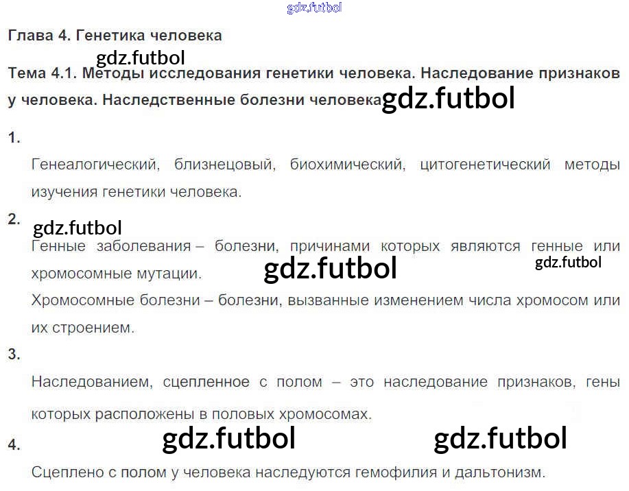 Готовые домашние задания по Биологии за 11 класс Пасечник Рабочая тетрадь УМК Базовый уровень 2017 ФГОС - Глава 4. Генетика человека Тема 1